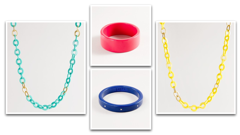 Jenna does plastic too. Love the resin bangles and link necklaces at J.Crew. Just the right amount of color for your summer outfit.