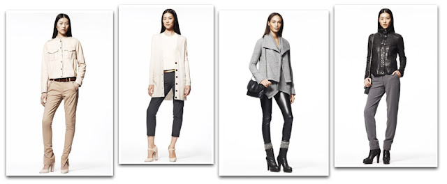 Some may think Gap's repetitive black, gray and Ivory palette is getting old, nope not me, I love their showing for Fall. I am definitely getting the gray asymmetric sweater and black leather jacket below.